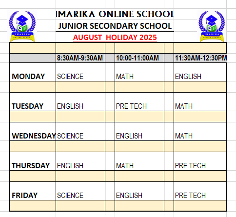 JUNIOR SECONDARY TIME TABLE AUGUST 2025